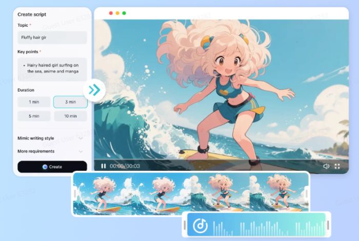 - Automatic conversion of texts, scripts, or blog articles to video.