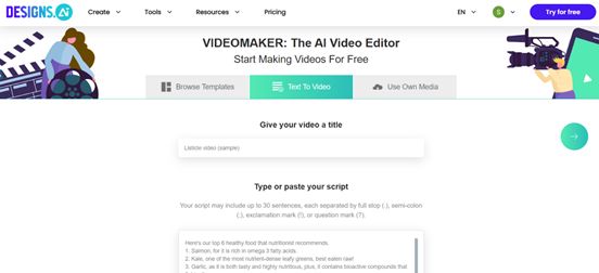 Designs.ai is a design-based and all-inclusive tool that aids the user in creating videos, logos, and social posts, all created via the use of artificial intelligence. It is catered to small, fast-growing, and content businesses and individuals.